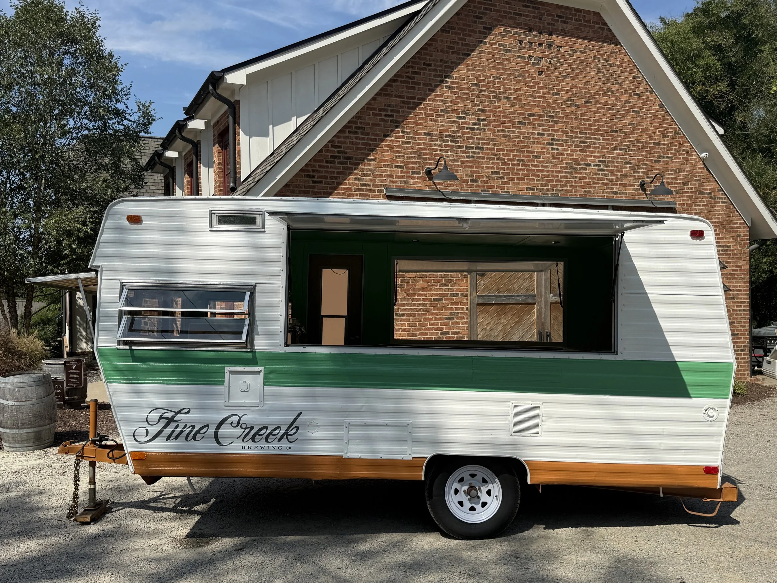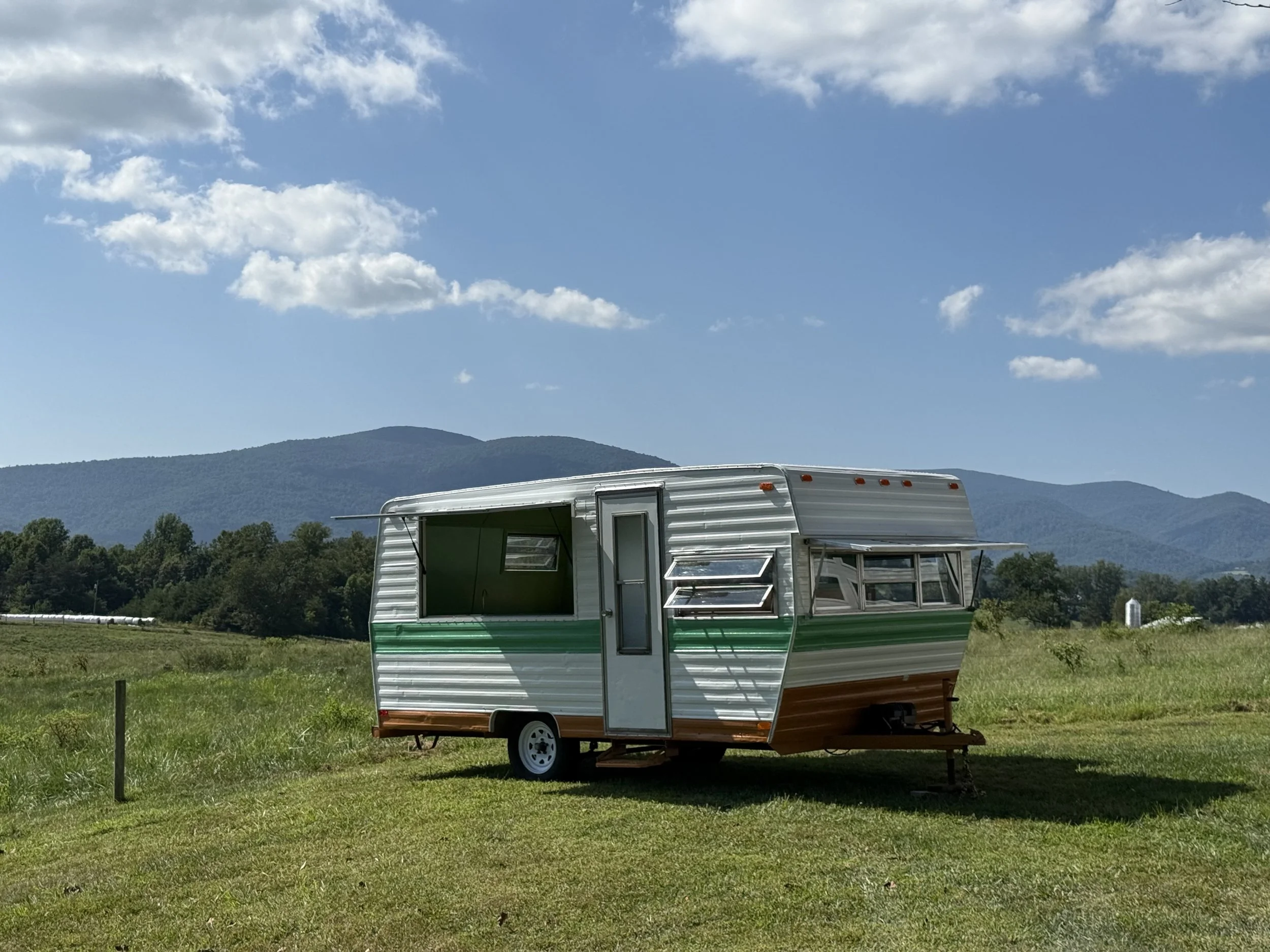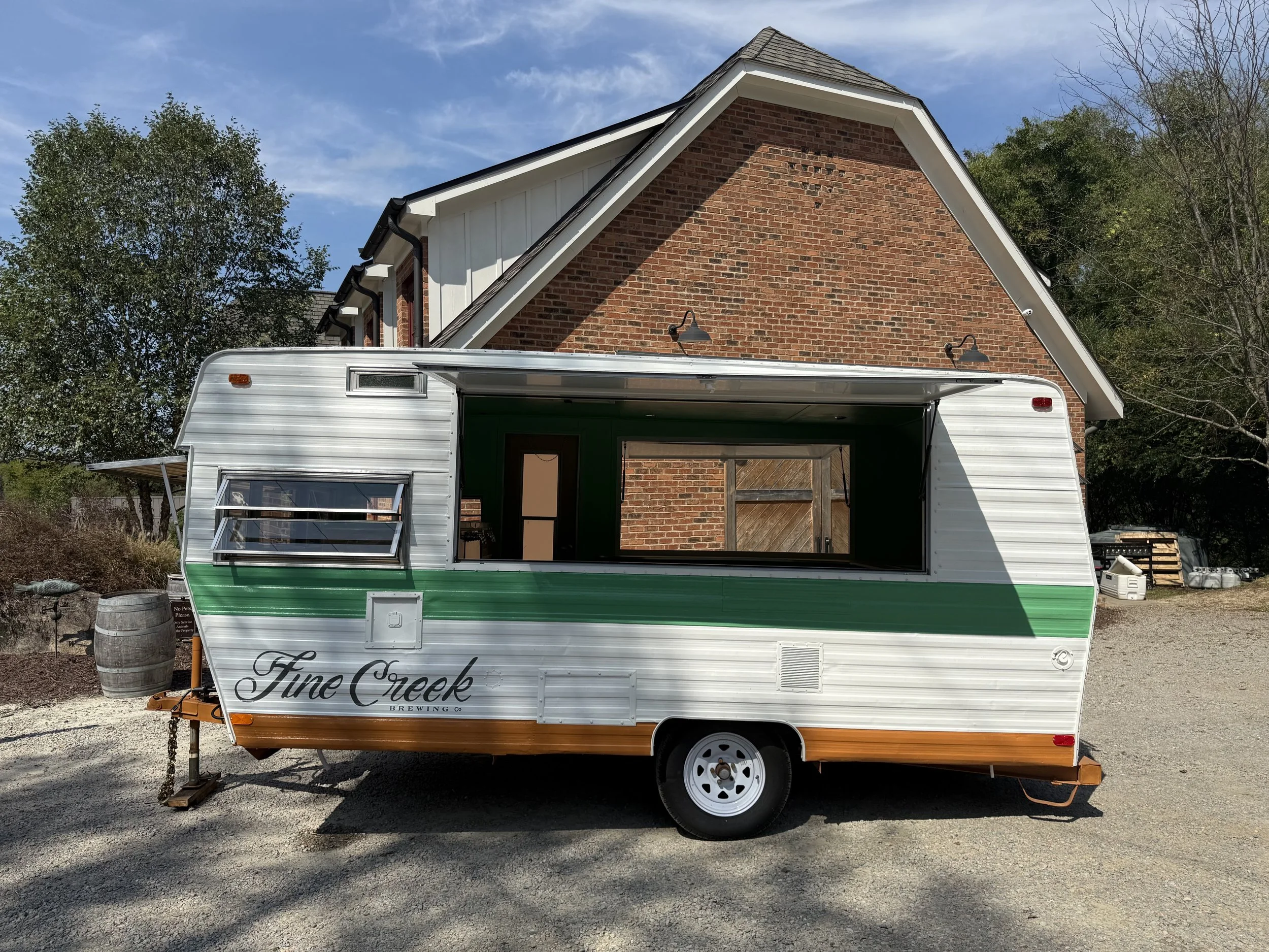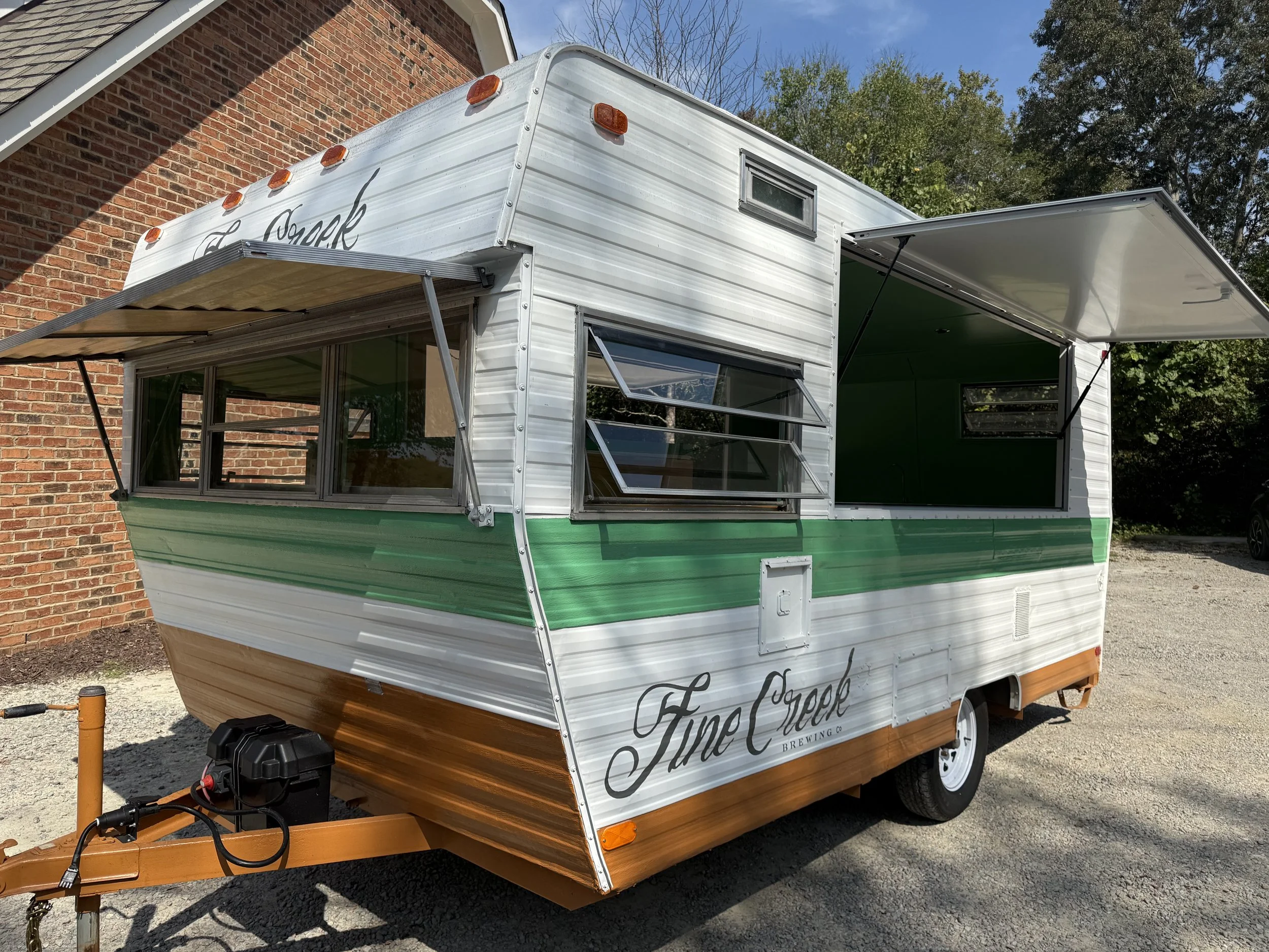 This was a family affair and total passion project. My husband runs a brewery and had been on the lookout for a camper he could retrofit into a beer festival trailer. Low and behold, he found this ole girl on the side of the road waiting for a chance at a next life. Enter my dad, handyman extraodinaire, and voila: a beer trailer is born. My dad took it down to the frame and then he and I worked together to come up with the best layout for her newfound life as a beerfest groupie. The color scheme and materials were ‘70s inspired, while keeping in mind the practically of pouring beer for the massses. Cheers!