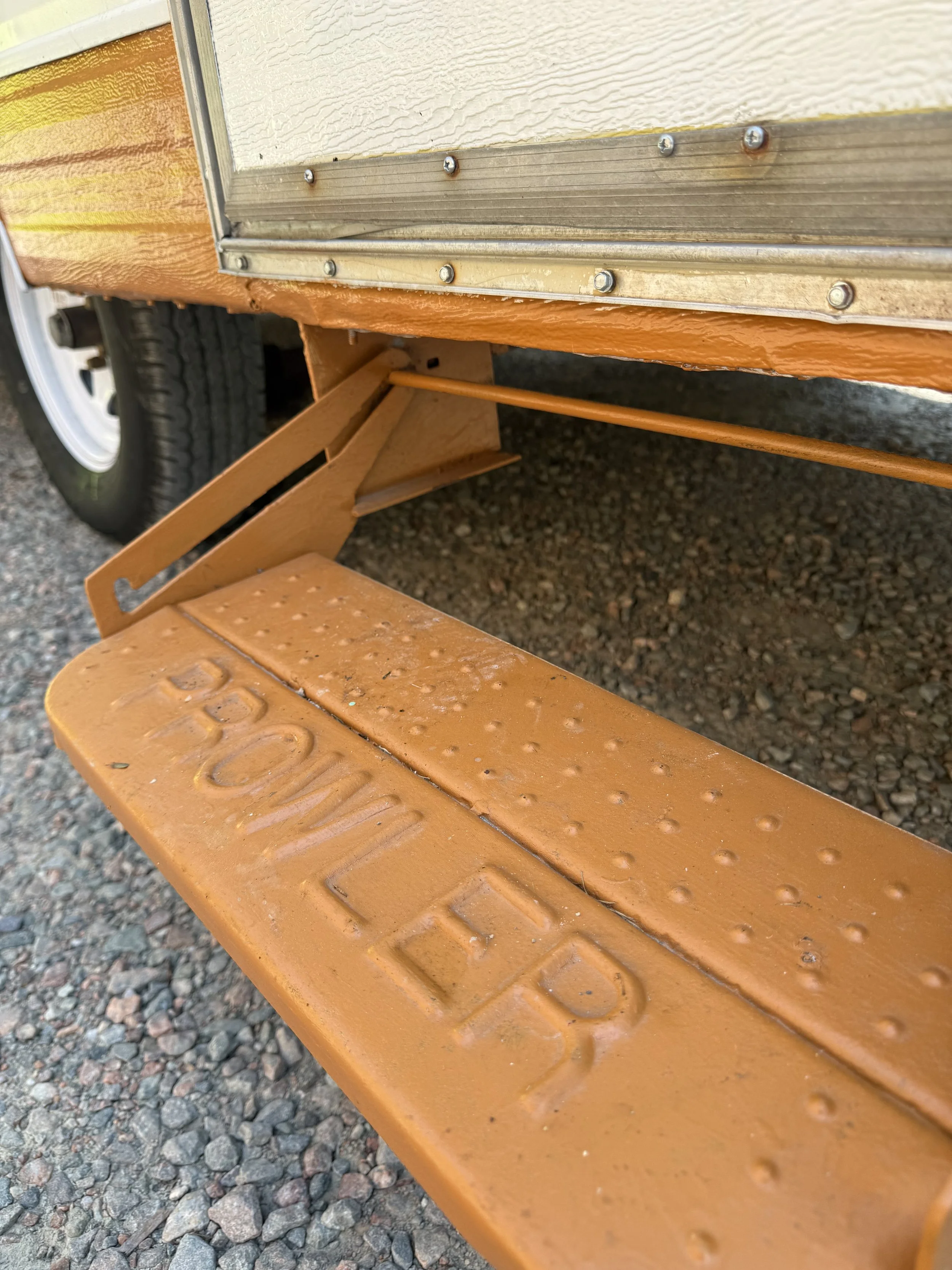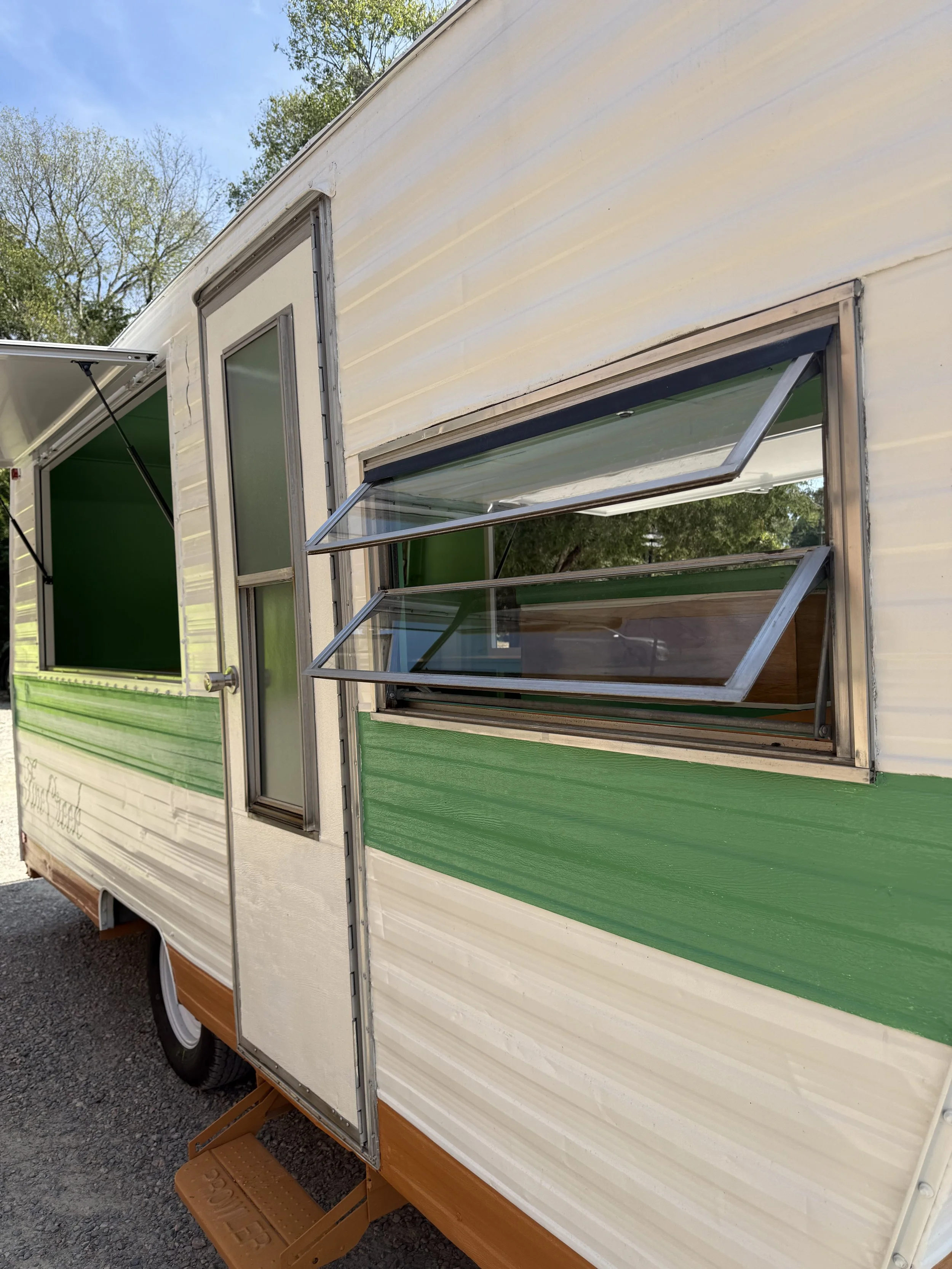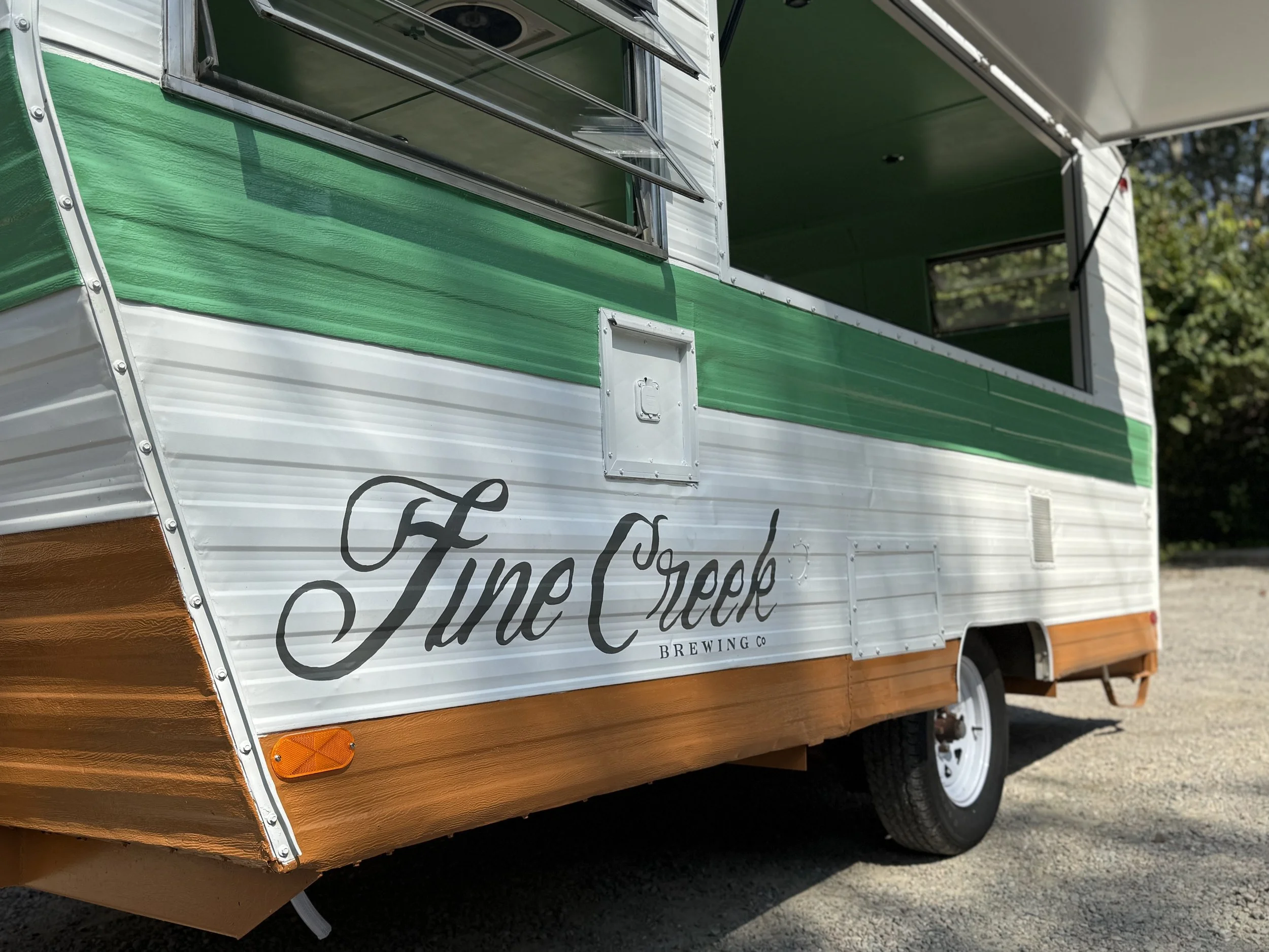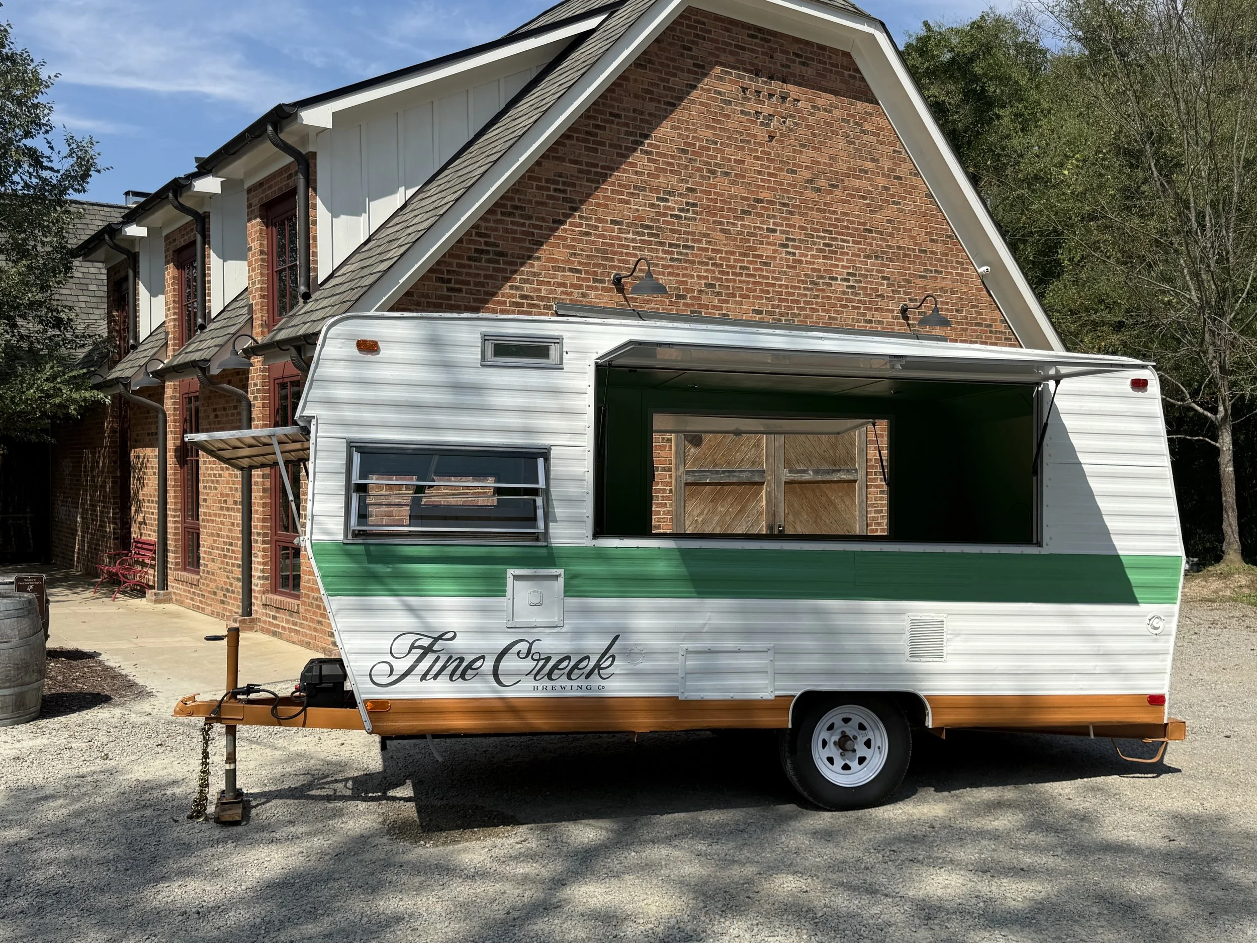 This was a family affair and total passion project. My husband runs a brewery and had been on the lookout for a camper he could retrofit into a beer festival trailer. Low and behold, he found this ole girl on the side of the road waiting for a chance at a next life. Enter my dad, handyman extraodinaire, and voila: a beer trailer is born. My dad took it down to the frame and then he and I worked together to come up with the best layout for her newfound life as a beerfest groupie. The color scheme and materials were ‘70s inspired, while keeping in mind the practically of pouring beer for the massses. Cheers!